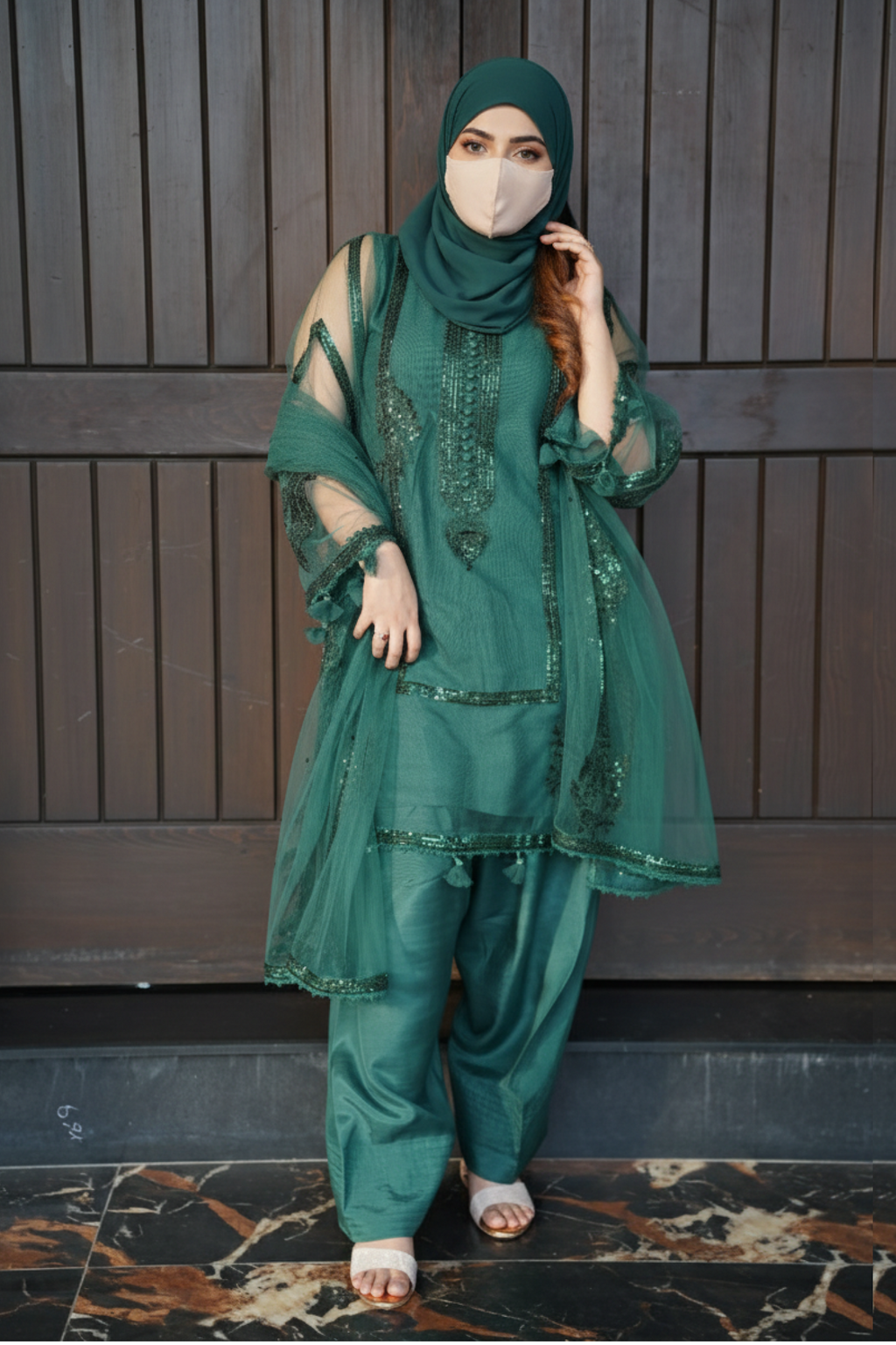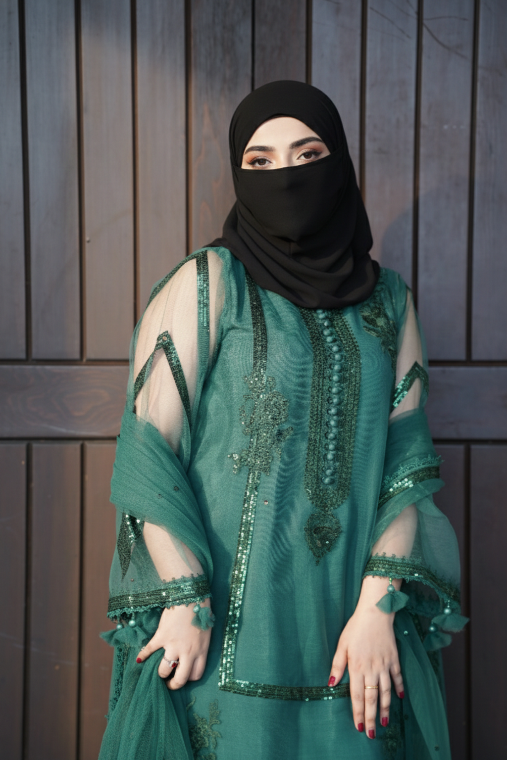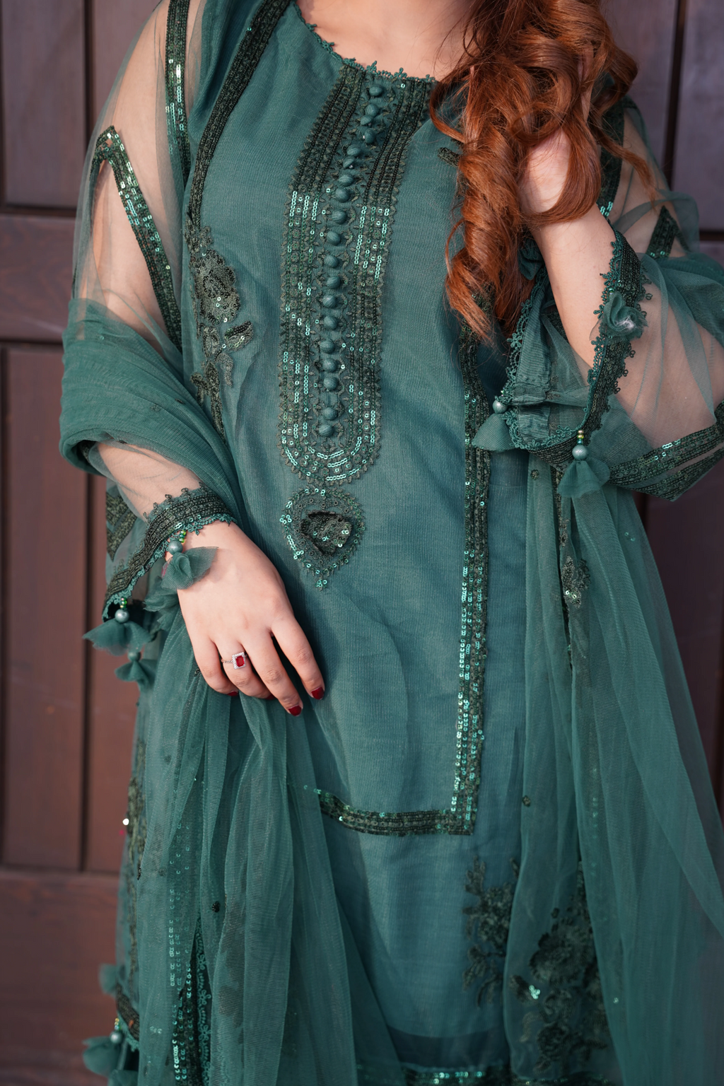 DEEP TEAL 3 PCS - Embroidered